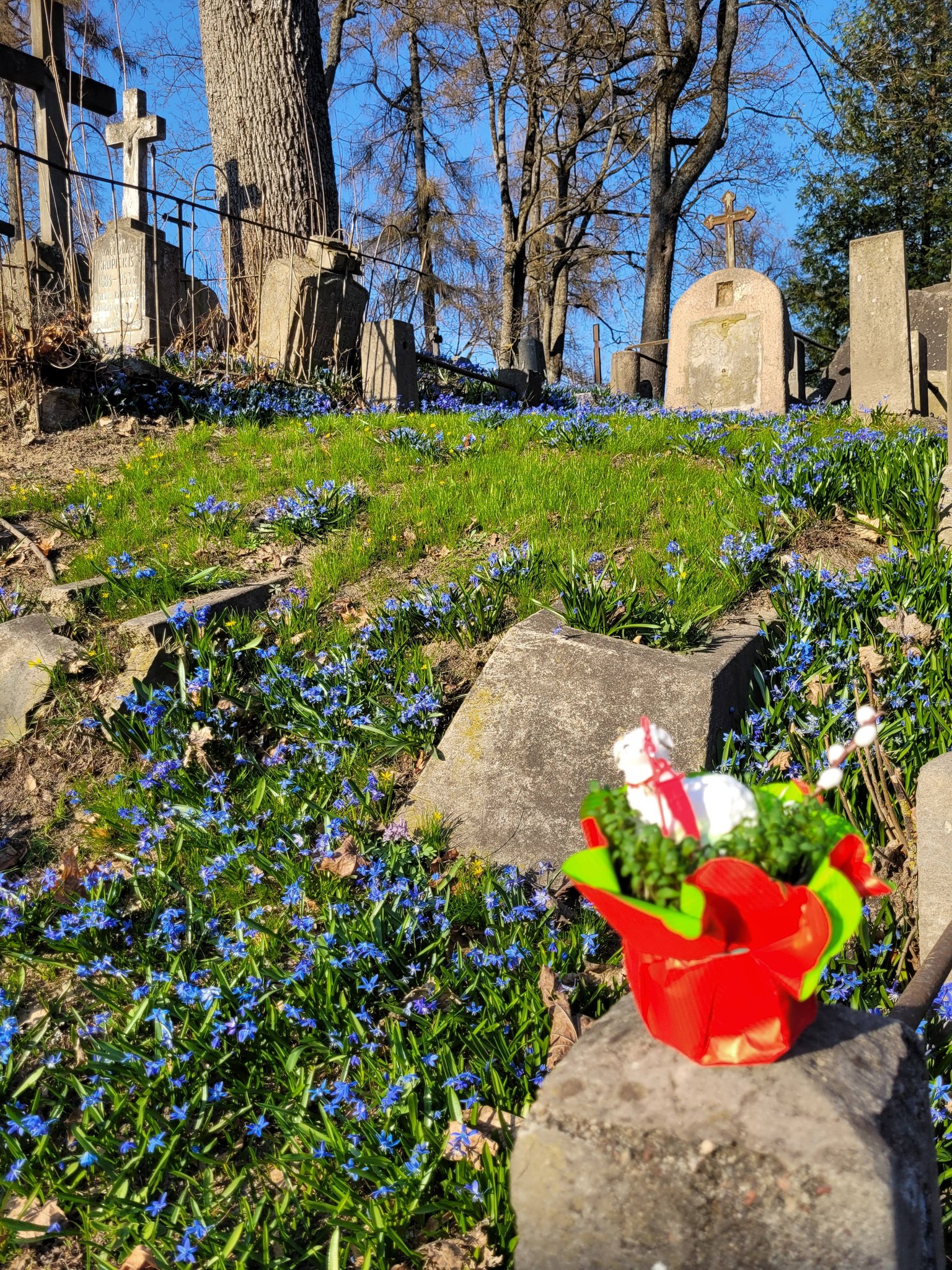 A syberyjskie scylie rozsypane po nekropolii, pierwsze pąki drzew, powiew wiosennego wiatru, niech dodają otuchy, przypominając, że każdy koniec niesie w sobie obietnicę początku.